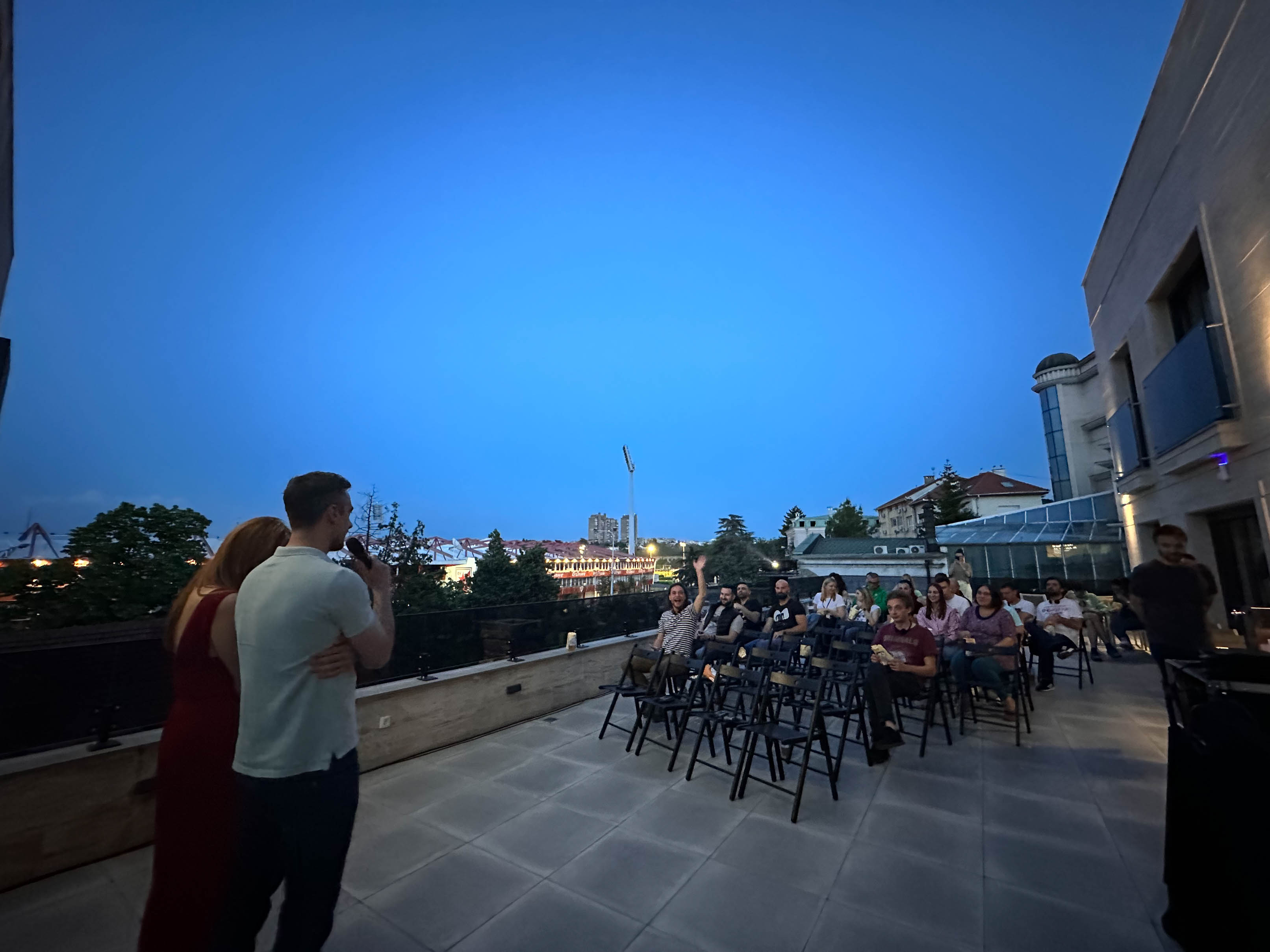 Sve to nam se veoma dopalo i ima veze s našom pričom o kulturi dijaloga (link), o razmeni, učenju i širenju pogleda na svet, o kulturi, umetnosti, poštovanju i pristojnosti. Logično, započeli smo saradnju. Imali smo i jednu projekciju filmova s festivala kod nas na terasi, a ekipu smo pozvali i da posebno svrati, da proćaskamo i snimimo razgovor.